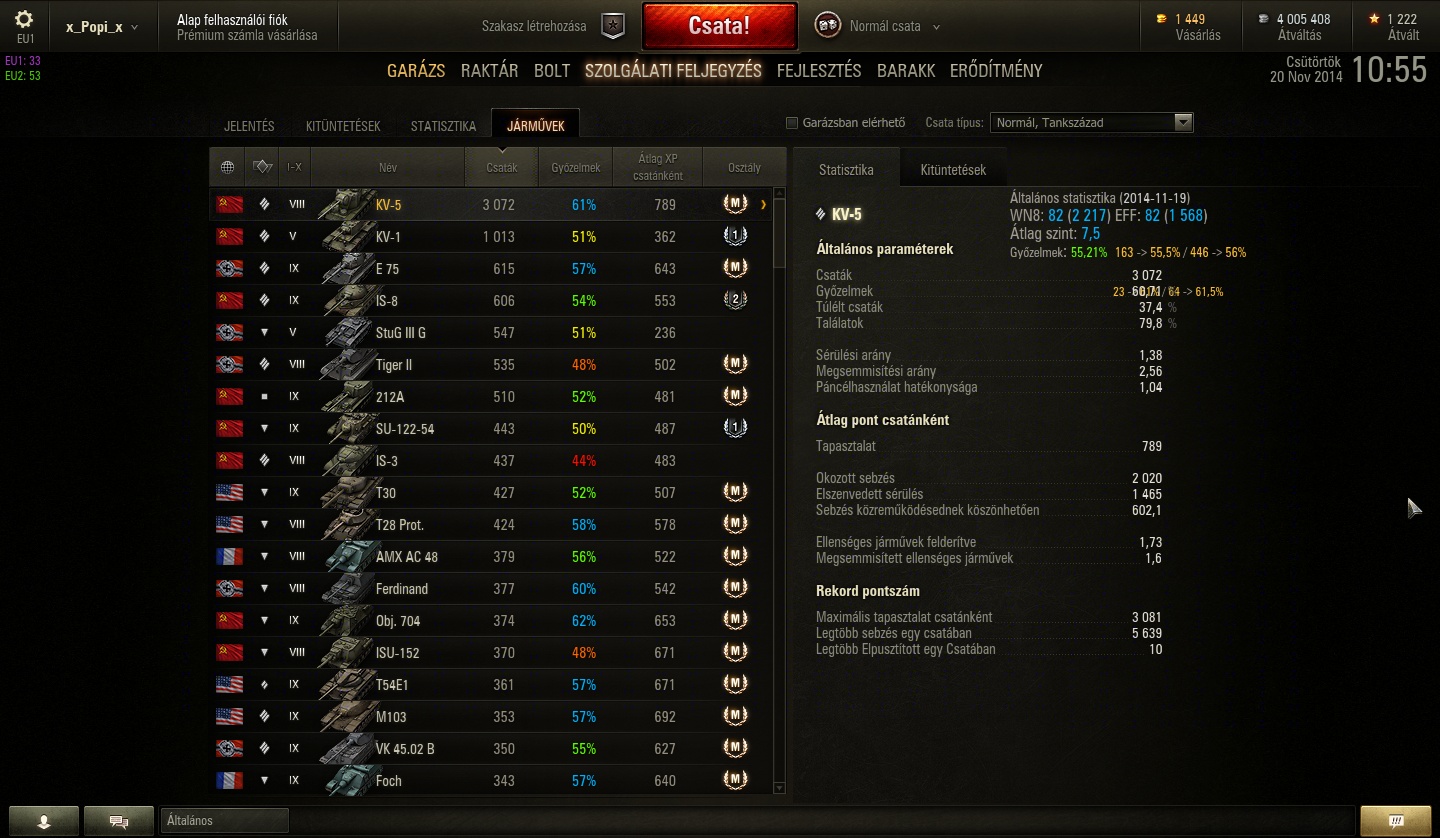 Löwe-vel 500+ csatám van, T34-gyel 1300+, 8.8 Jagdtigerrel 400 körül, SU-122-44-gyel 400+, ezekről tudok érdemben véleményt írni.