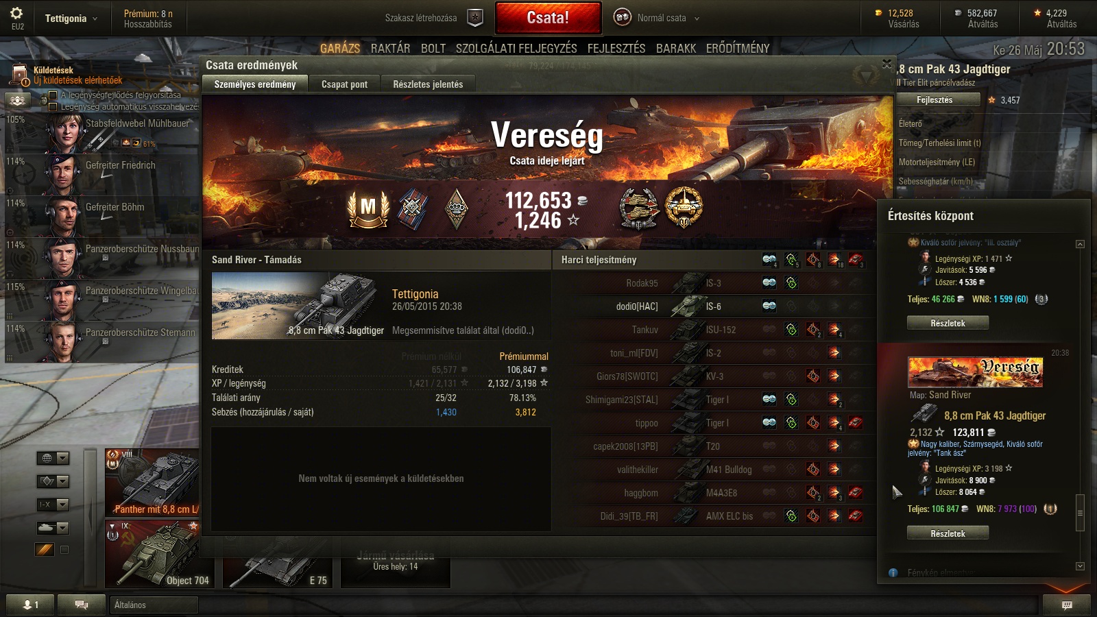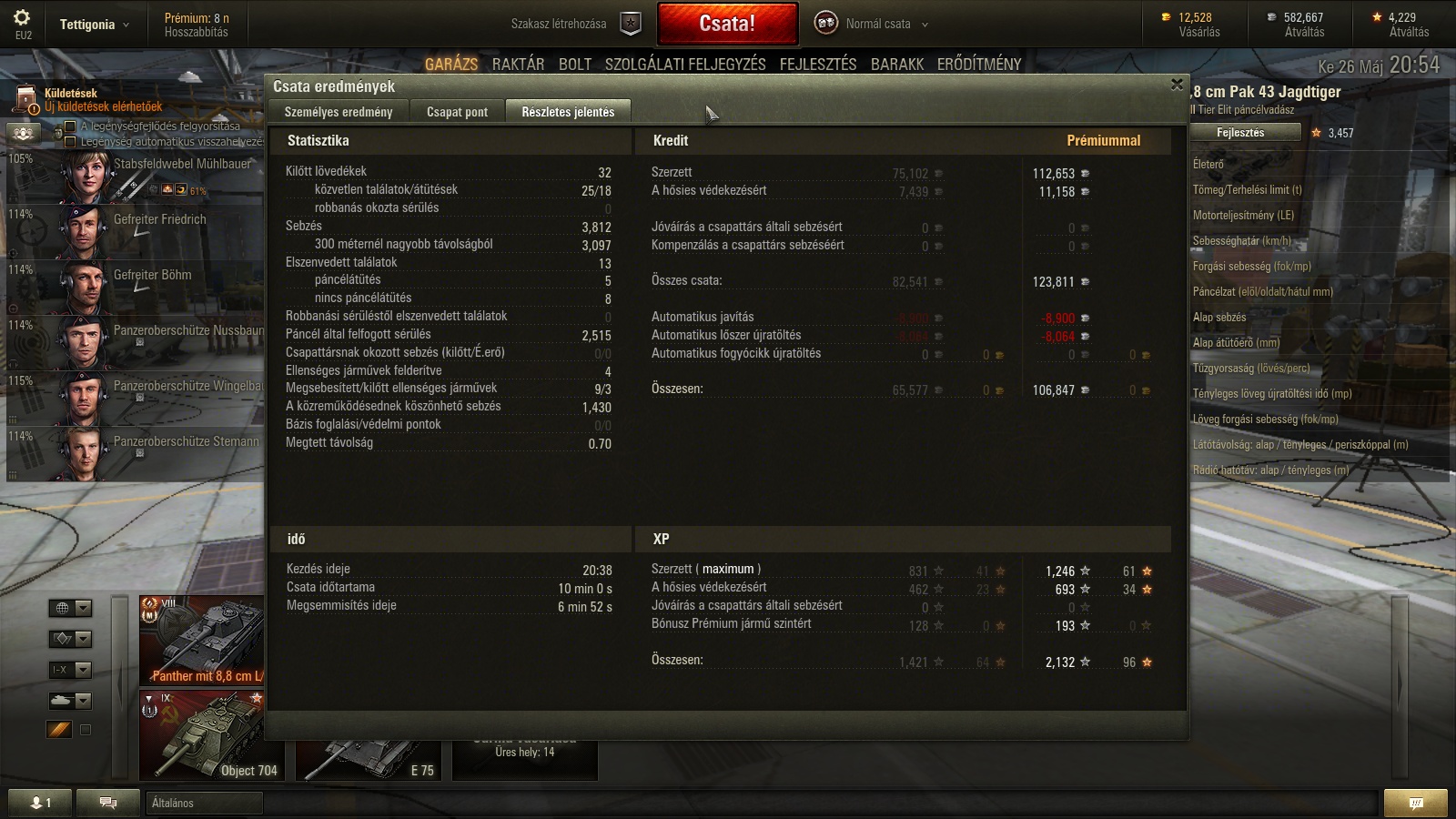 Object 704 (garázsban) ezt szeretem, de nem küzdök, hogy meglegyen a T10 belőle, mert 300k xp