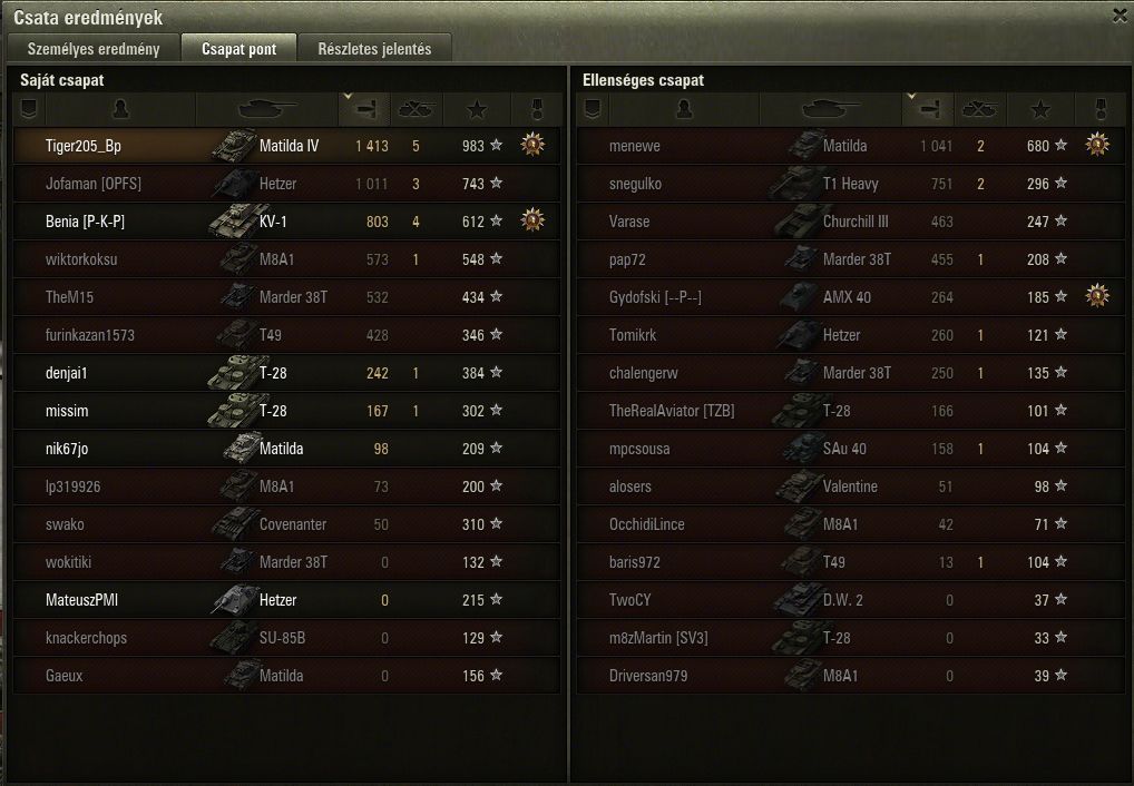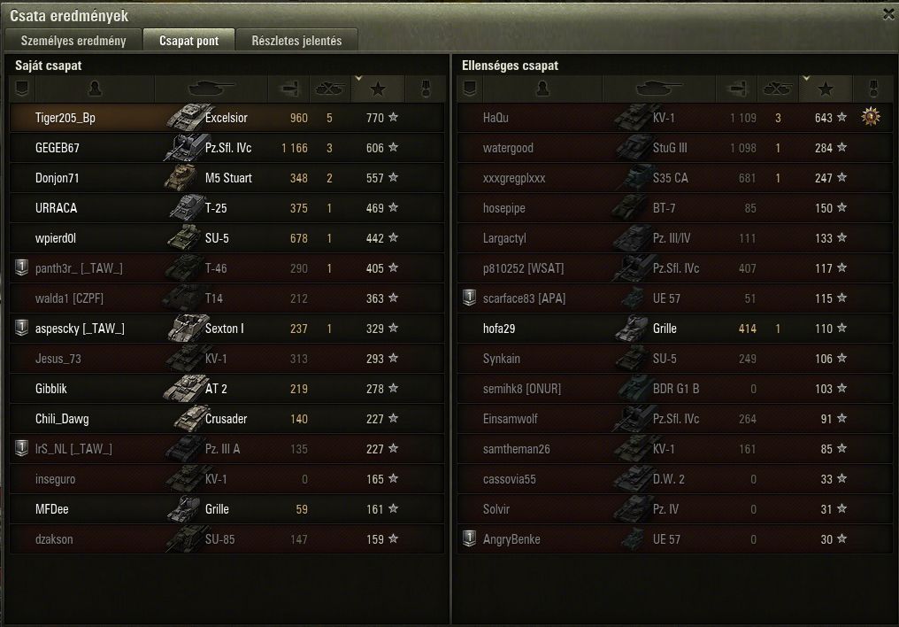 első szakszban Kharoon-nal, Cromwell kilőtt az elején, minden lövése sebzett, nekem a fele ellene