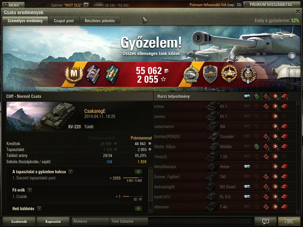 De az MM engem kb. 1 hónapja nagyon szívóágra tett, tegnap is 1,8 volt az átlagos +tierem 30 egynéhány csatából. Ez azt jelenti, hogy (mivel 10-es tankkal is mentem) egyetlen tankom sem (na jó, talán 2x volt) ment saját tierben 1x sem...