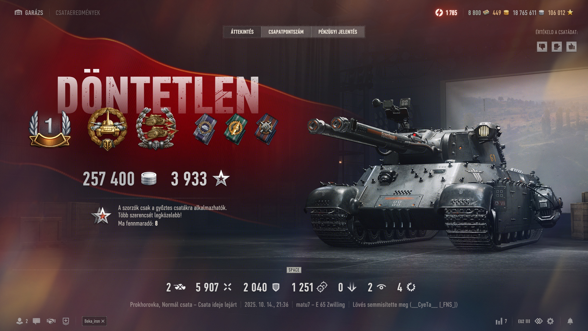 Vasárnap meglett, az első BP/kampány tank amit teljesítettem (többire vagy idő nem volt vagy nem érdekelt). Első csata vasárnap nagyon jó volt, majd időm nem sok volt tegnap, de ma tudtam játszani. Volt pár nagyon rossz kör, de aztán jött ez.. Ellenfélnél életben maradt az ELC és volt könnyűtankuk, nekünk meg csak heavy-td maradt, így kb esélytelen volt a győzelem..