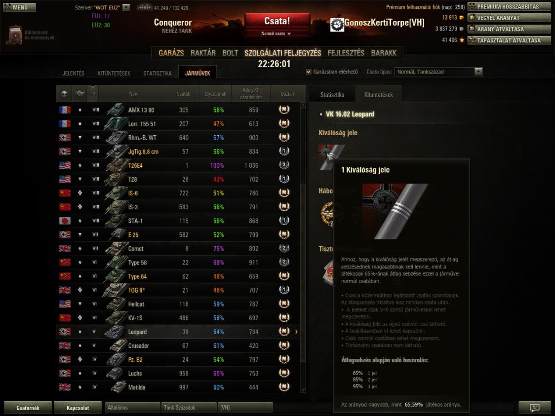 A SU garázsát 2011. október 31-én hozták létre, velem 2014. július 25-én találkozott csatában... tehát kb. 2,5 év múlva... ezalatt a 2,5 év alatt résztvett öszesen 1292(!!!) csatában... és a garázsában csak 3db.(!!!!!) tankkal csatázott összesen...