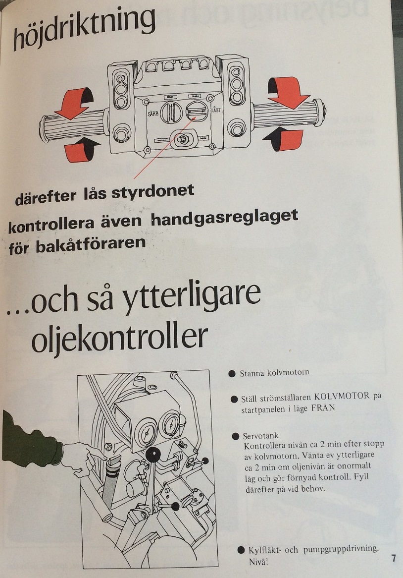 Egy lap az eredeti Strv 103 kezelési útmutatóból. A vezetési/irányítás átadásának módját mutatja.