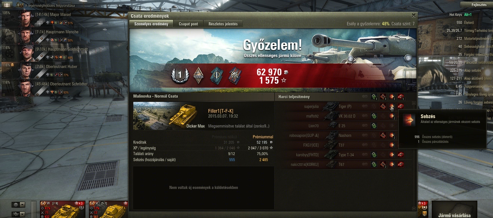 Én a T-34-3-al (a sokak által legszarabbnak tartott prémtankkal) kihúztam a 121-be egy 2.5 skilles legénységet, a WZ-120-ba meg most húzom a másikat és már 80%-on az első skill. Annyira tehát nem vészes új legényeket kezdeni, mert baromi gyorsan fejlődnek (egy 2-3x crew xp-s eventen pillanatok alatt) és közben ömlik a kredit is.