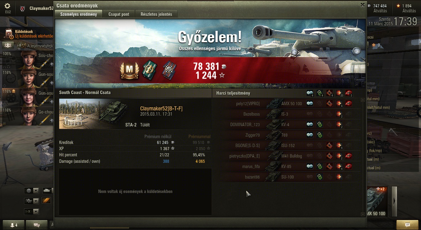 Épp kijöttem egy vesztes csatából, matilda BP-vel, kb az első percben szétkaptak fishermans bay-en, mert egyedül mentem a jobboldali flanken. Ami ebből az érdekes, hogy így is 3700 nettó credit pluszban van, prémiummal hozott volna 6700-at. Bizonyára mások a fogalmaink a farmolásról.