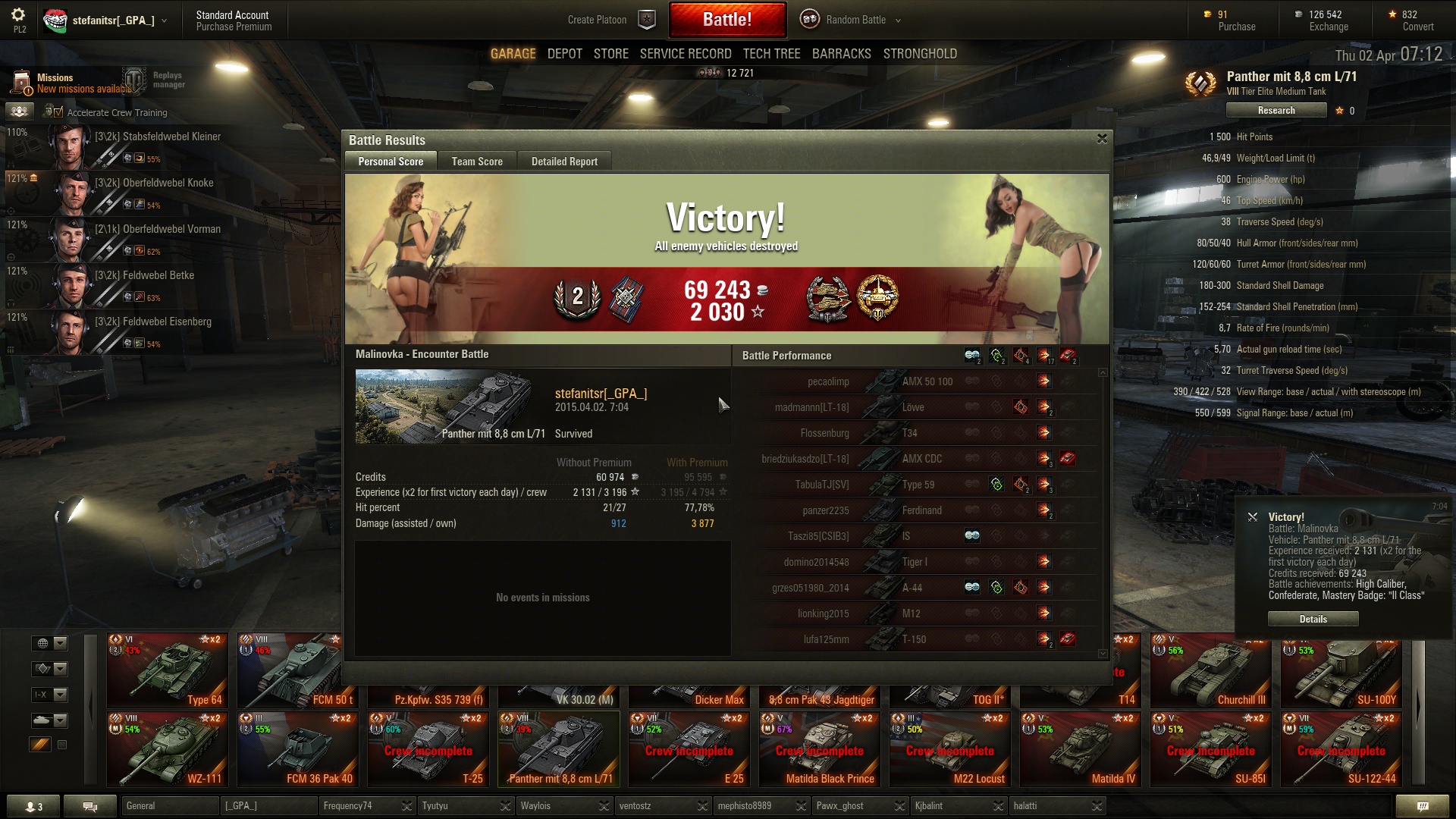 Az IS-6 és 112 mind a kettő nagyon bejött nekem; kb., mint a cseresznye- és meggy pálinka. Nem lehet közöttük választani, mind a kettő jó és kell!