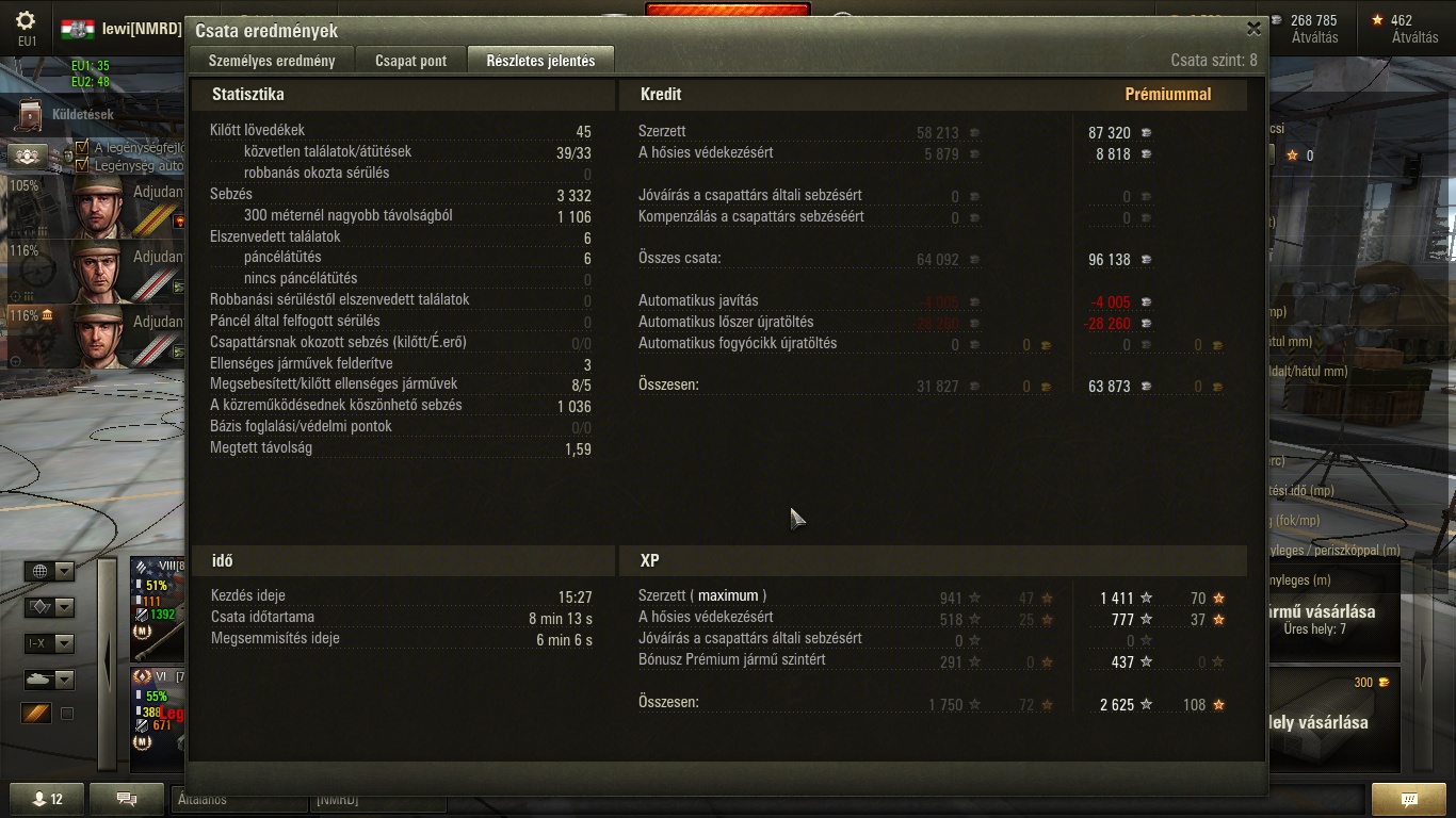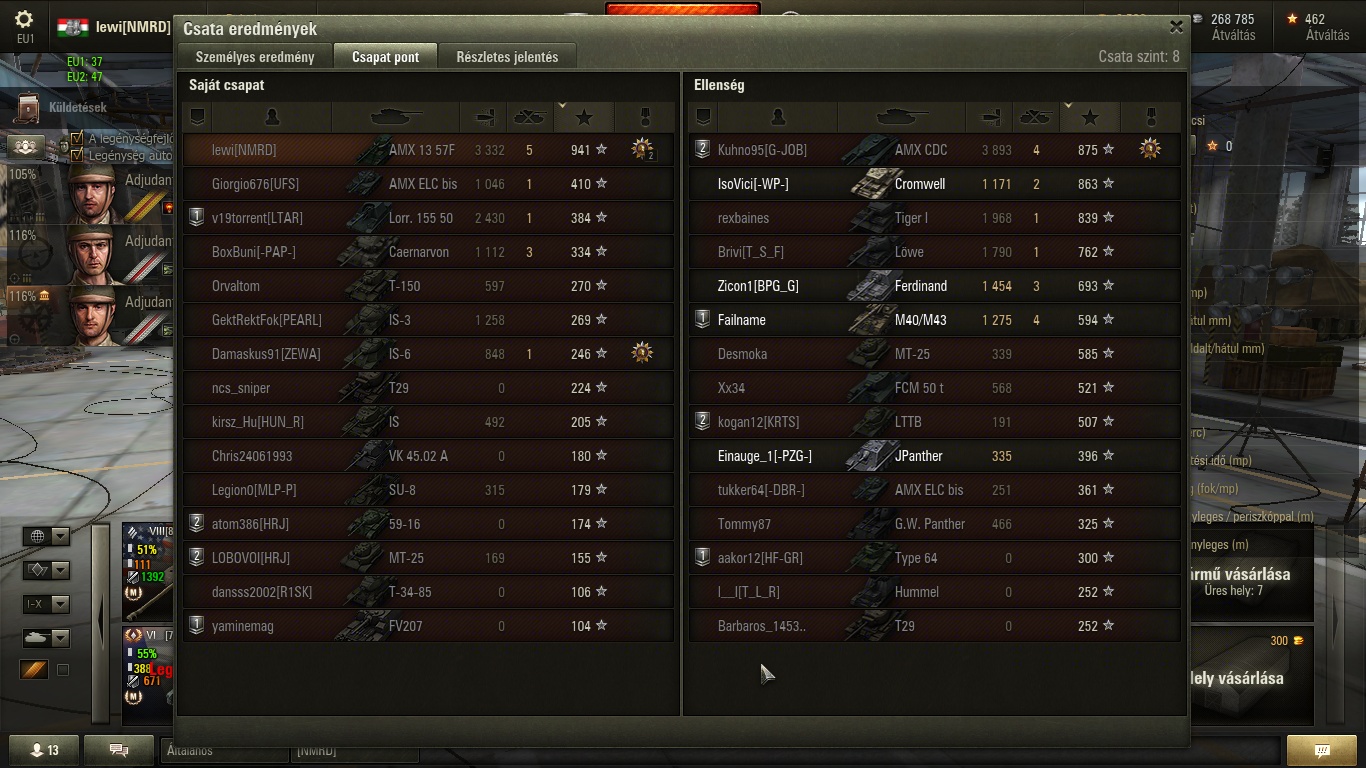 A 70 meccs alatt a pancelja brutalisan jo volt, elso meccsben 5k pattano. Az agyu hat, valamiben rossz is kell legyen a tank