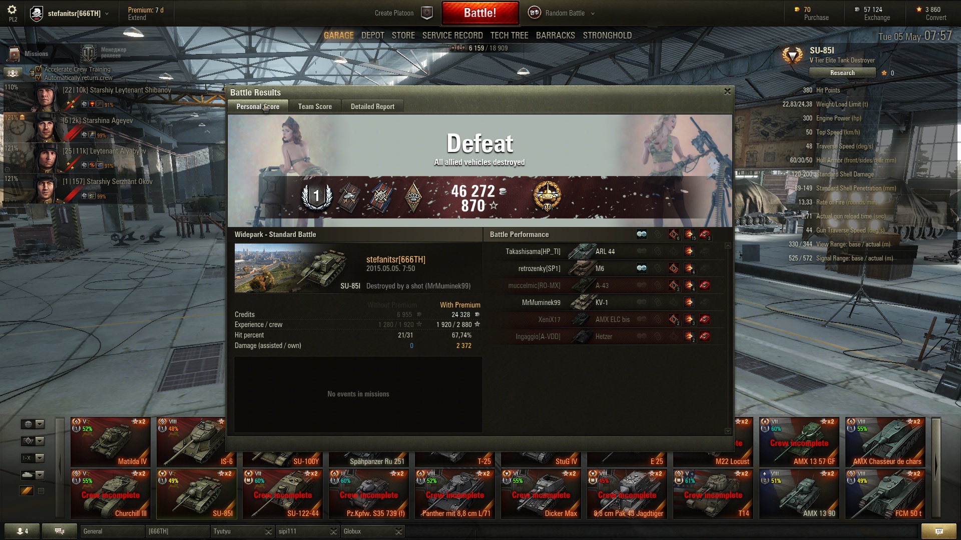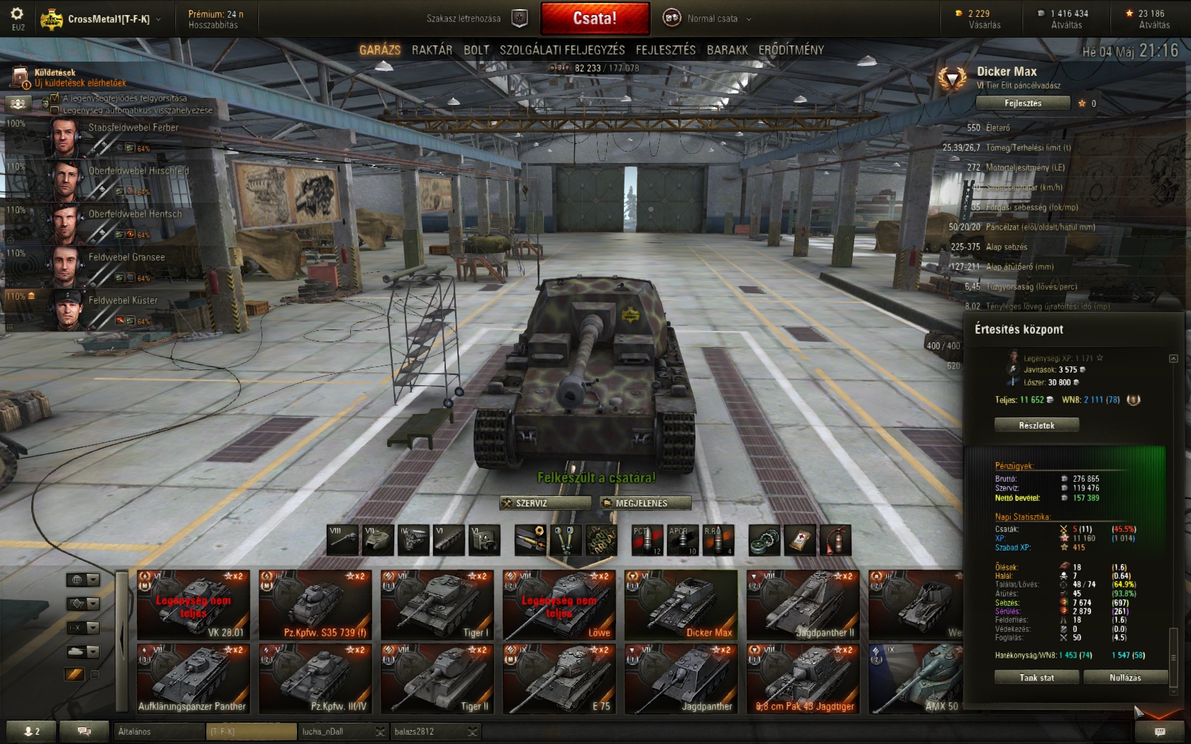 Hát én eddig a 1xx csatám alatt úgy tapasztaltam hogy minden 3adik csata tier6. De ott sem vészes a helyzet, mert a tankok nagy része átmegy, sőt egy kv-85öt könnyebb átlőni, mint egy kv-1et szerintem, legalábbis érzésre. De ha nem ütöd át őket akkor a gold átütése 170 körül van és ráadásul APCR. A repeszlőszer hiánya eddig nekem egyszer sem okozott problémát. A tankba rakhatunk 120(!) lőszert, én a 100 sima 20 goldot hasznélom, eddig a goldból 10nél kevesebbet soha nem lőttem el. amúgy ezzel nagyon egyszerű a játék, bemész a heavyzúzóba, és simán áttolod a frontot (kis óvatossággal)