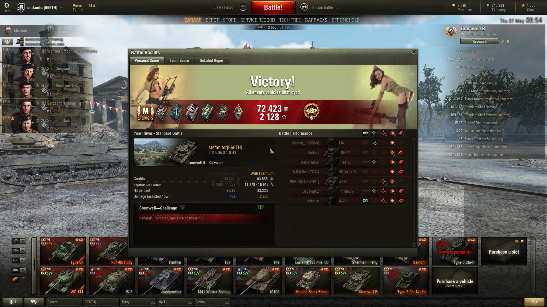 A Cromwell Berlin jelenleg jobb mint a sima cromwell, és a tény sem elhanyagolható, hogy alapból egy 100%-os, 0. skillnek számító (tehát a következő skillhez szükséges XP ugyanannyi mintha első skill lenne) BiA-val érkezik, tehát az összes alap statja alaphangon +1,05x-ös a saját legénységével, és május 19.-ig a napi dupla után 5x xp minden olyan nyert meccs, amiben bent vagy az első 10-ben.