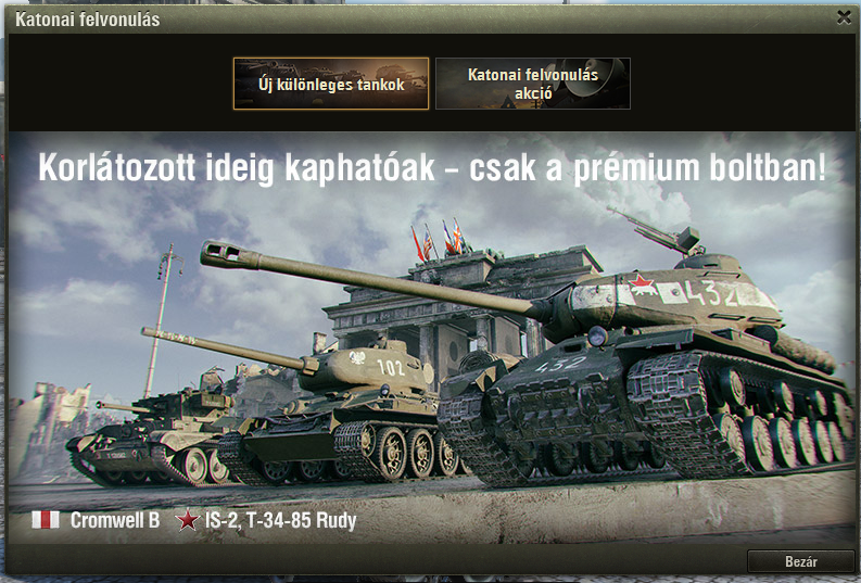 Az utolso a necces, ahhoz azert is6 vagy wz kene. T34 is talan, de abba annyira nme bizok. Hiaba mennel el vele dombharcolni lehet lassu toltes miatt radugranak siman es akkor annyi. WZ-t en szeretem es latok benne potencialt, csak ne legyen egi patkany, es kell egy jo hulldown pozicio, meg ne felj spamelni a goldot 8+os heavykre, meg t54re meg olyanra amit celzas nelkul nem losz be aPval.