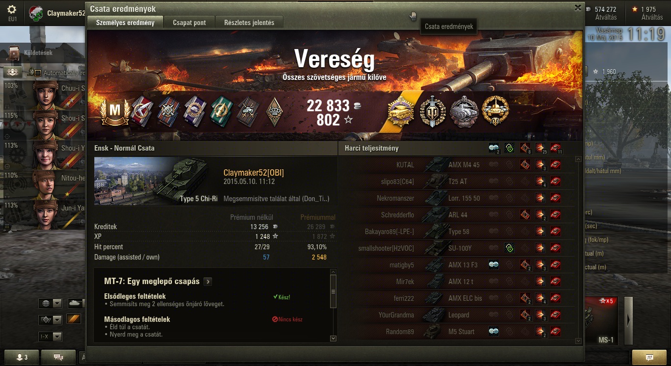 Azta, nem is hittem volna, hogy ezzel a papír, csatahajó méretű valamivel lehet 10+ killt csinálni. Nekem a Pool Medáljaim mind OP ruszki tankokban lettek meg