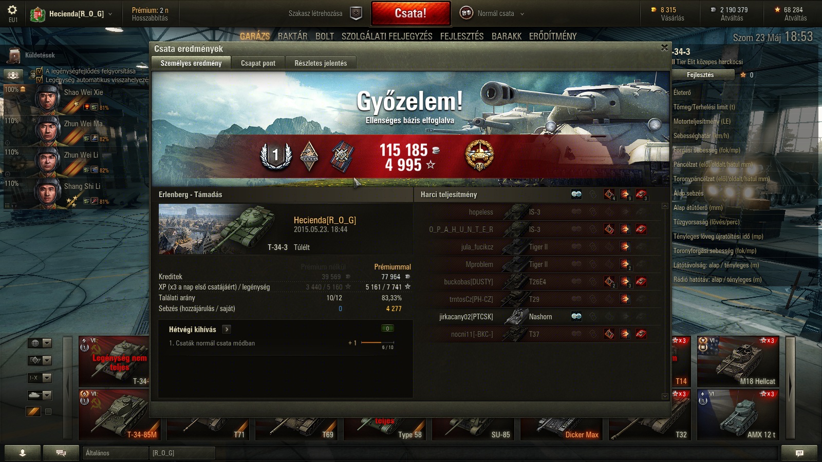 és úgysem közelharcolok velük,ha meg igen,oldalról hátából elég a 175pen,szerintem.és az esetek 80 90 százalékában nyolcas csatába tesz az MM. Szerintem jo kis tank nem bántam meg,hogy megvettem