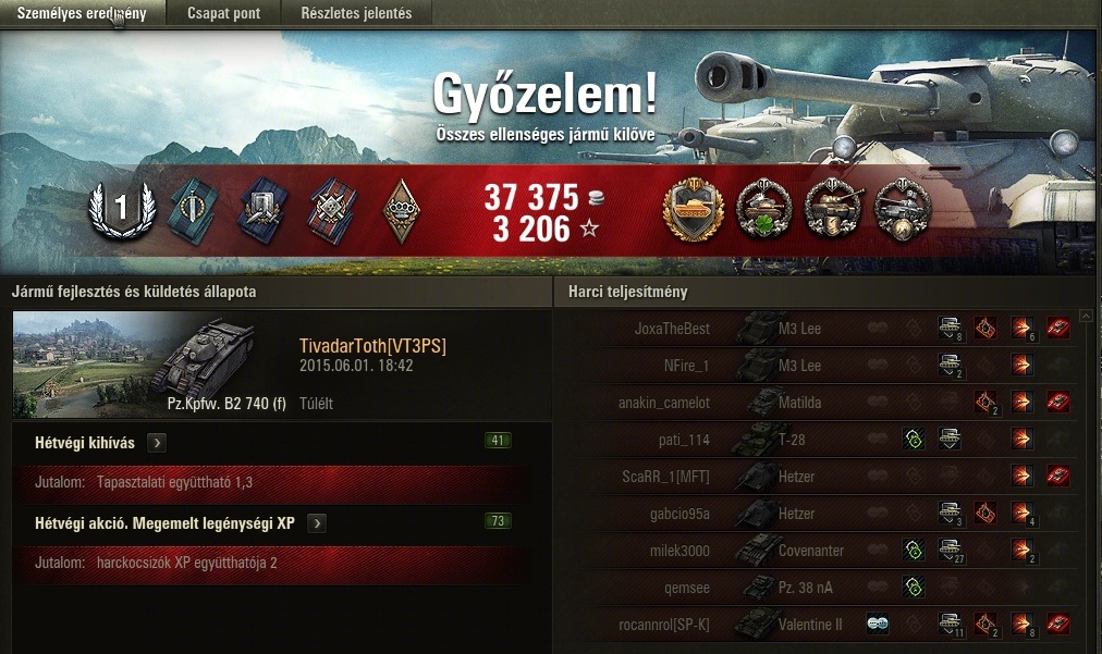 Amúgy jelenleg akkor lehet az lesz, hogy most majd veszek egy 5,5k-s vagy 7,5k-s pakkot (garázshely és egyéb költségek miatt), mert nekem már van 8asban egy fcm, szerintem azt nem lehet felülmúlni, és 2 tank van amire nagyon vágyom, egy jó kis type64 osztagba meg amúgy is jó és light, és a su100y, azt meg szimplán funnak tartom, meg egypár td-s küldihez is jól jönne, na meg 10. helyen áll a pénzszerzésre vonatkozóan, egyes 8asokat megelőzve.
