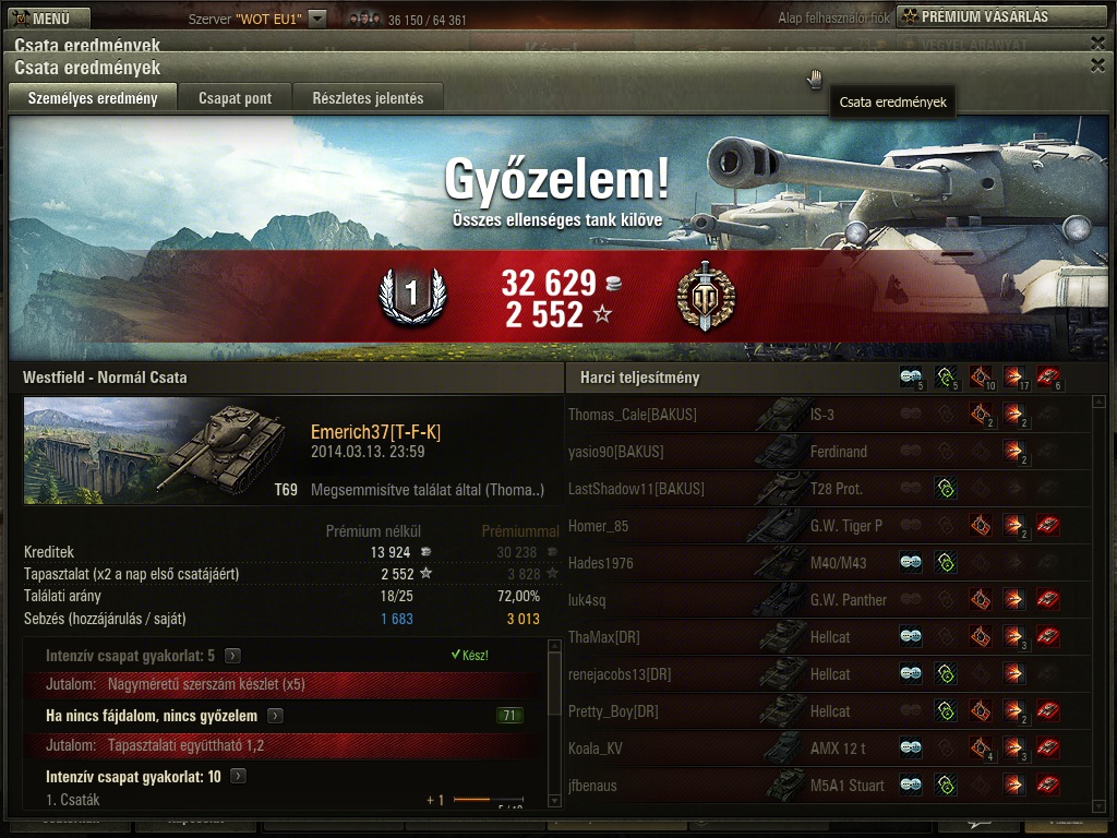 Éppen most írtam, pár képpel honorálva a T69 ről szerintem nagyon jó kis med kellemesen csalódtam benn egyedüli negatív a top löveg penje de itt egy kép , ez arany lőszer nélküli csata , elvből nem teszek bele.