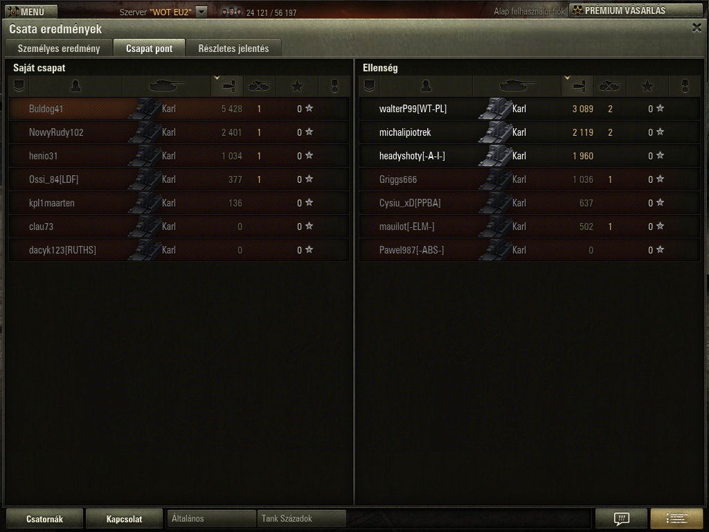Találkozott már valaki a t95E mittudomén milyen tankkal? Tegnapelőtt egy X-es meccsen egy 54k-s játékos rámlőtt vele. azt hittem csak elírás a dmg panelen, de nem, mert a végelszámolásnál is ezt írta. Prémium aranyszíne volt.. Még soha nem láttam ilyet, pedig 9k csatám van már.