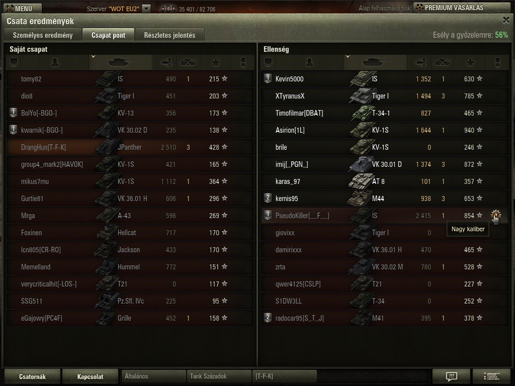 A nagy kaliberhez úgy emlékszem az ellenfél csapatának a 20%-át kell lesebezni, lehet az övüké magasabb volt mi a te csapatodé.