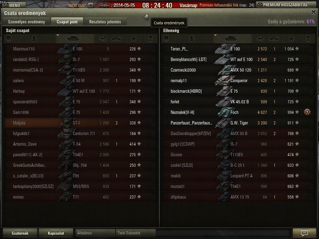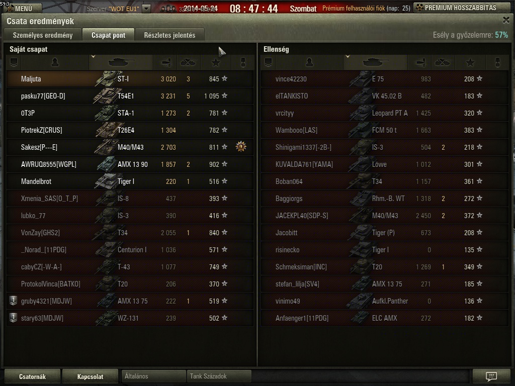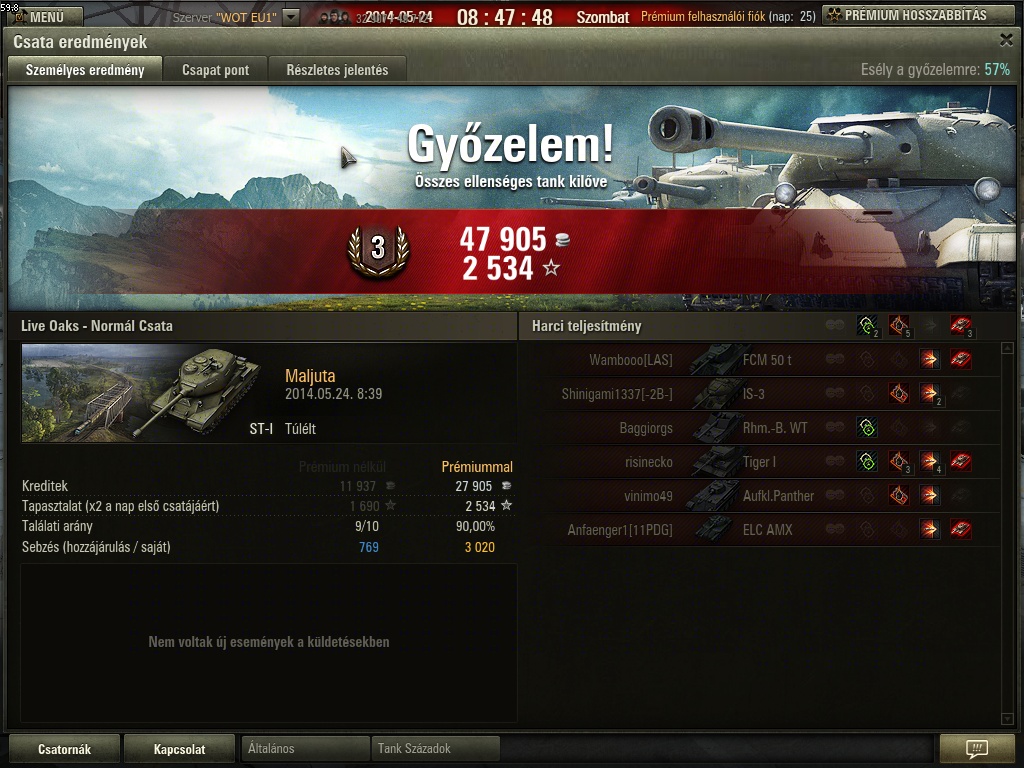 Ebben a csatában nekem négy killem volt. Elméletileg nekem a Bruno medált kellet volna megkapnom, nem mintha nem tetszene a Billote medál