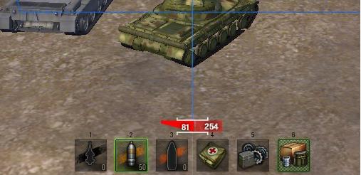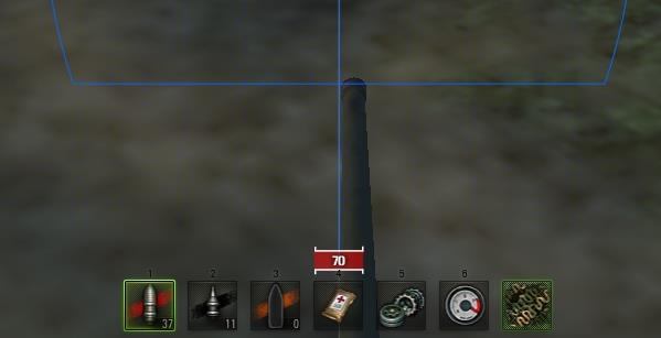 A célzórendszer alján (a monitor aljának a közepén) látható egy piros téglalap, benne egy fehér számmal (pl. 70), ami tankonként változik.