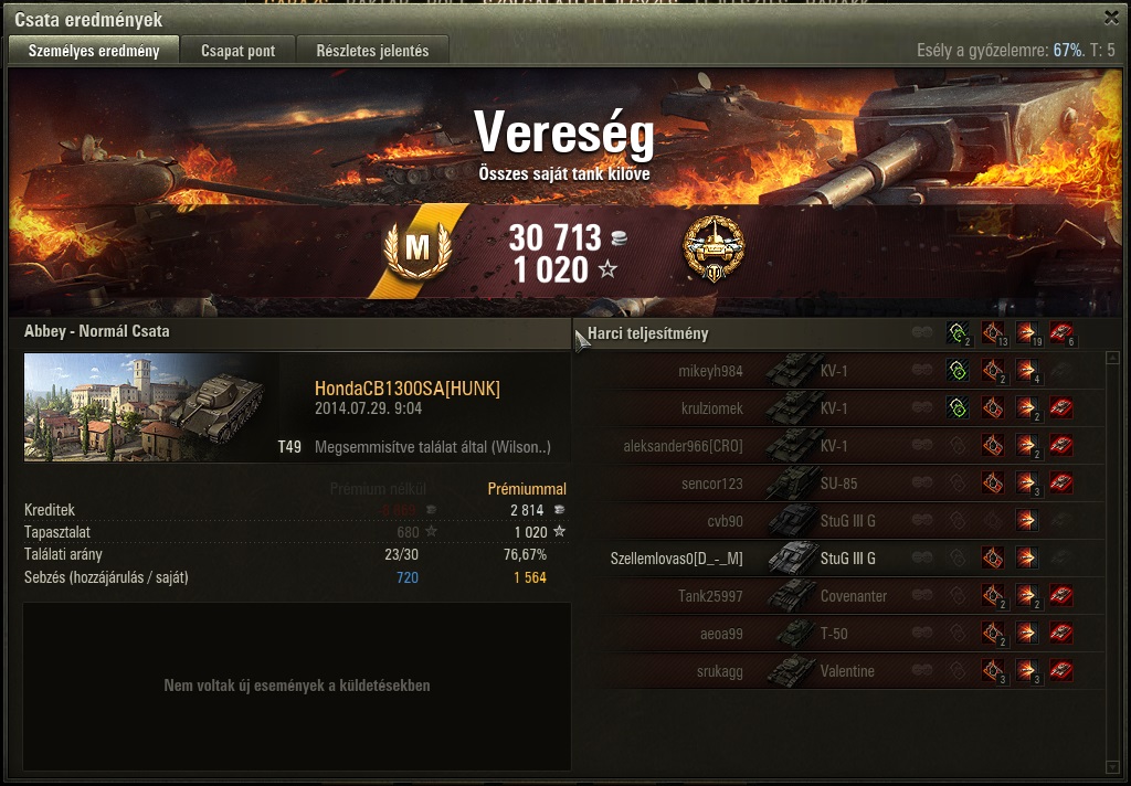 Ma mentem egy jó kört T49-el, 6 tankot elintéztem, kaptam tankászt, nagy kalibert, de topgunt nem, meg tudjátok mondni miért.