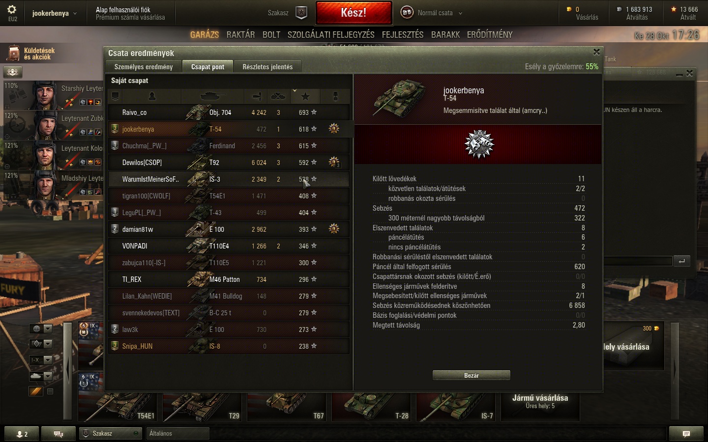 De ha már rangsorolnom kéne, hogy mégis melyik az a mutatószám, ami a legjobban megközelíti a játékosok valódi "harci teljesítményét" akkor ma azt mondom, hogy ez a Wn8. Nem tökéletes! Ezt is lehet "mesterségesen" farmolni, de még mindig a legjobb!