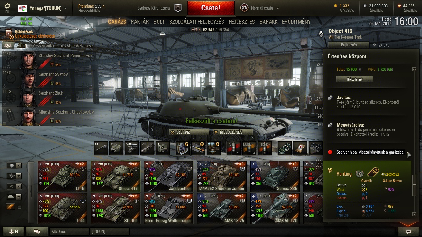 Sok tankommal "elfelejtek" jól játszani, amint elér egy 50-60-as csataszámot, vagy eléri a legénységem benne az alapskillekkel a 100%-ot.